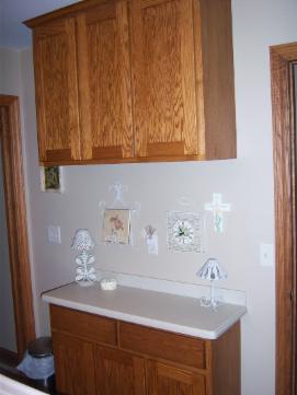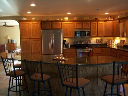 Quality Cabinets at an Affordable Price. Donna & Mark HenselOak kitchen, Shaker doorsVarathane Provincial stain, Granite countertops. Quarry tile floor over in-floor hot water heat.