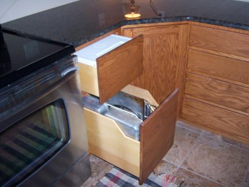 Bread & Pan Cabinet. I designed this & after installing in our house, I have been recommending it to others. Bread drawer cover is currently unavailable.