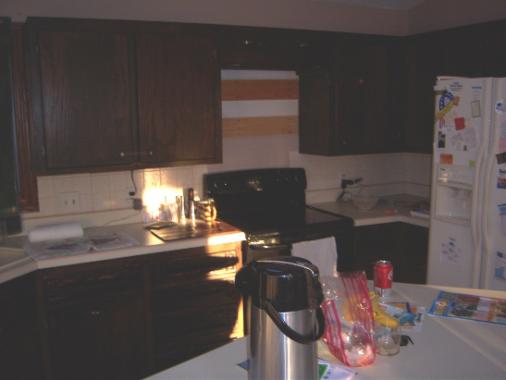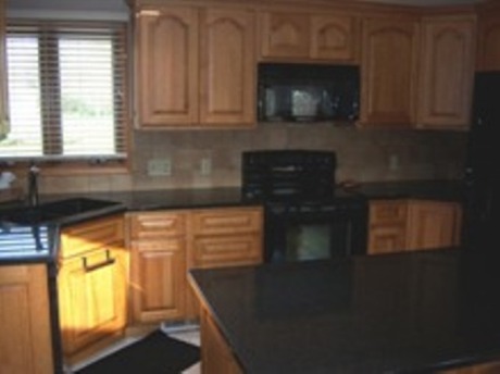 Kitchen after. ¼ sawn Red Oak Cabinets. All bells & whistles.