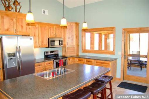 Kitchen area. Knotty Alder cabinets with shaker doors & drawers.